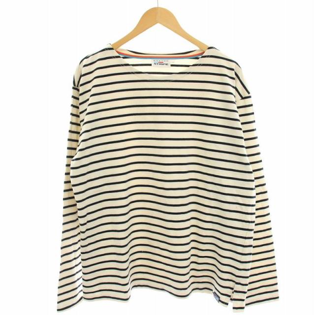 【中古】ブレトンストライプ クラシックシャツボーダーカットソー バスクシャツ Tシャツ 長袖 2XL アイボリー 紺