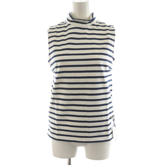 【中古】未使用品 ルミノア Leminor カットソー ボーダー柄 ノースリーブ コットン F 白 ホワイト 紺 ネイビー 51941