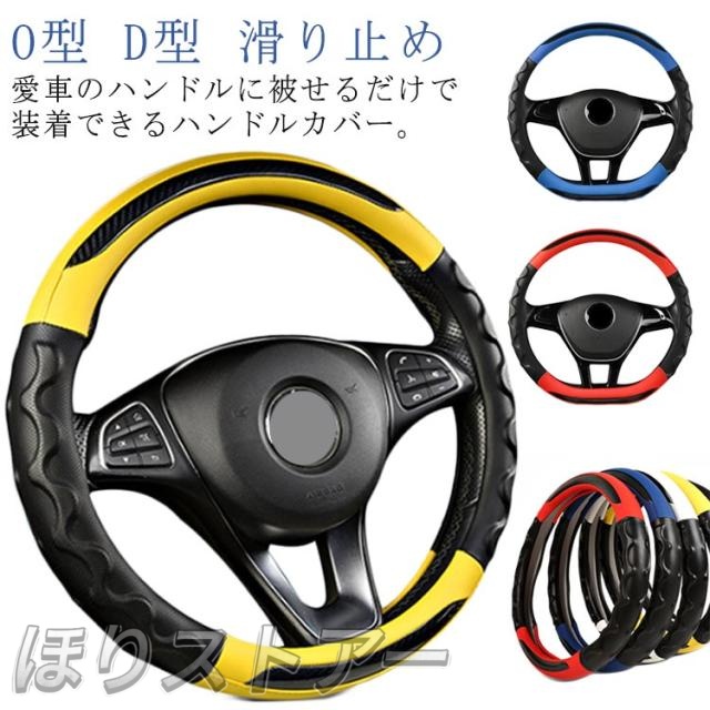 軽自動車 D型 ステアリングカバー レザー O型 簡単装着 通気 カバー 高級感 吸汗 滑り止め ハンドルカバー ハンドル 普通車 グリップ ズレない かっこいい おしゃれ 四季通用 オールシーズ 車内用品 カー用品