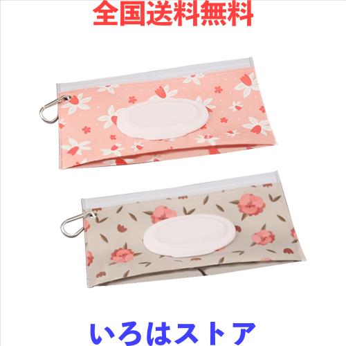 TVETE ウェットティッシュ ケース 持ち運び ウェットティッシュ ポーチ 【2個入り】 花柄 カラビナ付き 蓋付き フリップトップ 持ち運び