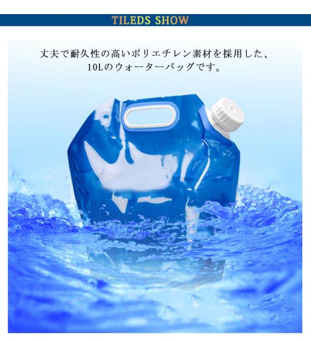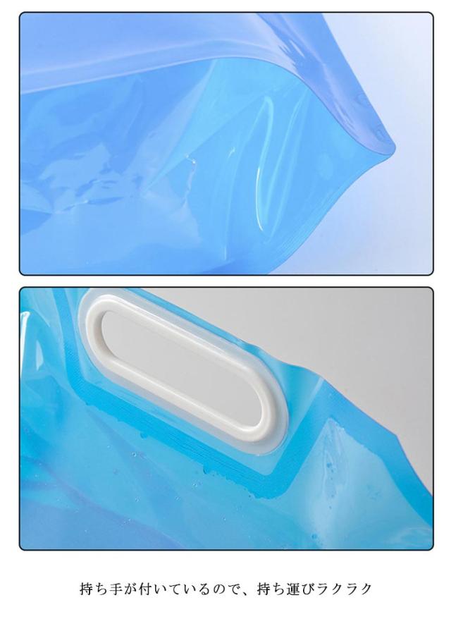| ・水を入れると自立する! ・さげてらくらく、持運び簡単折りたたみ水タンク! ・丈夫で耐久性の高いポリエチレン素材を採用した、10Lのウォーターバッグです。 ・給水口が大きめなので、水の出し入れが簡単。 ・透明な容器なので、水の残量がわかりやすいところも便利な特徴です。 ・断水・渇水などの災害対策用タンクとして、使用後はコンパクトに折りたたんで収納できます。 ・持ち手が付いているので、持ち運びラクラク ・車のトランクや物置にあるといざというときに安心〇 | |
