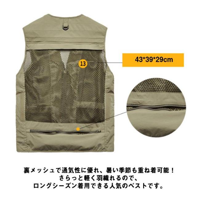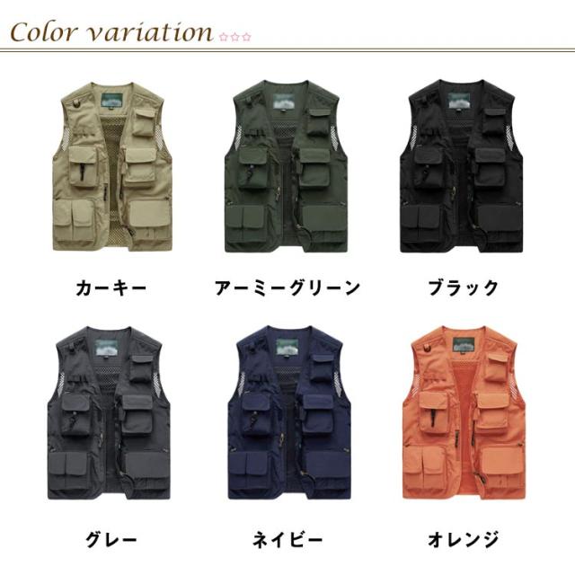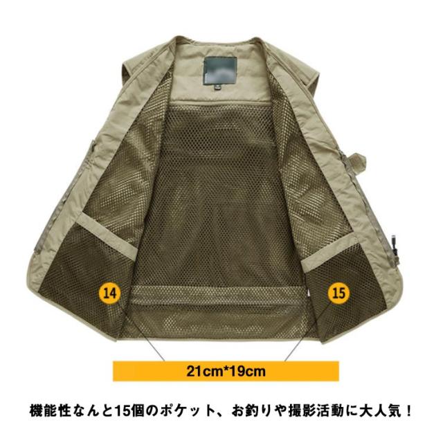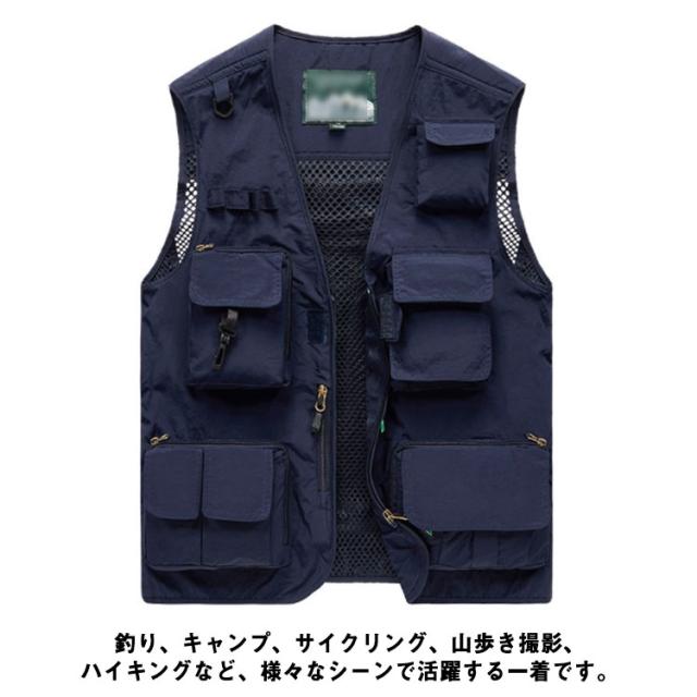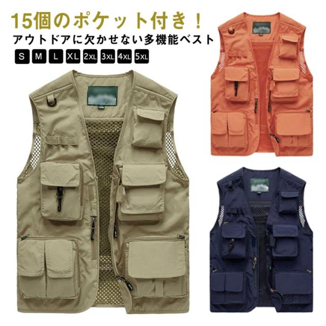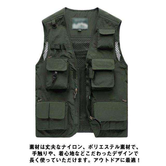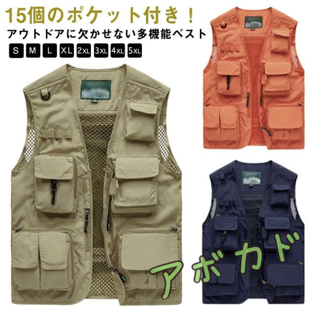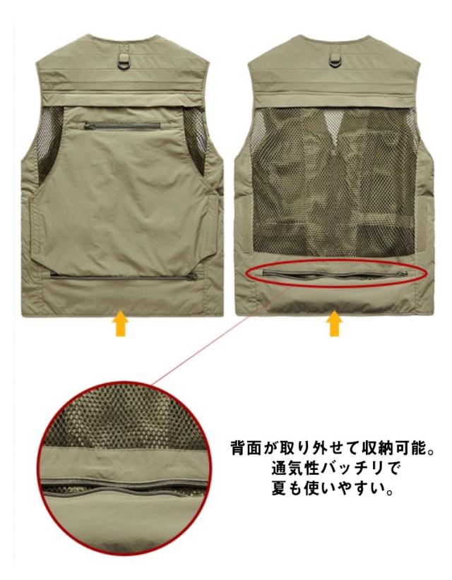 | 15個のポケット付き!アウトドアに欠かせない多機能ベスト 機能性なんと15個のポケット、お釣りや撮影活動に大人気! 裏メッシュで通気性に優れ、暑い季節も重ね着可能! さらっと軽く羽織れるので、ロングシーズン着用できる人気のベストです。 背面が取り外せて収納可能。通気性バッチリで夏も使いやすい。 素材は丈夫なナイロン、ポリエステル素材で、手触りや、着心地などこだわったデザインで長く使っていただけます。アウトドアに最適! 釣り、キャンプ、サイクリング、山歩き撮影、ハイキングなど、様々なシーンで活躍する一着です。 | |