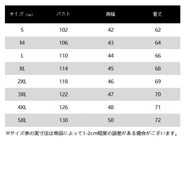 | サイズ | S M L XL 2XL 3XL 4XL 5XL |