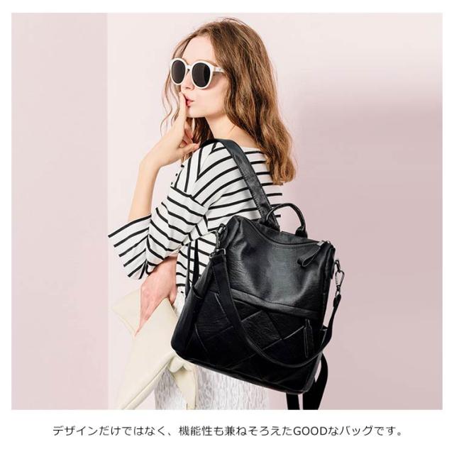 | デザインだけではなく、機能性も兼ねそろえたGOODなバッグです。 puレザーで作ったので柔らかい肌触り、耐久性は優れて、触り心地が良いです。 2つのベルトを金具に付け替えて、肩掛け、手提げ、リュックの自由自在な3way仕様。 スマホも財布も化粧品も、お出かけに必要な物は全部収納可能です! 普段使いに、お出かけに、通勤、通学、旅行にも便利なちょうどよいサイズ感。 | |