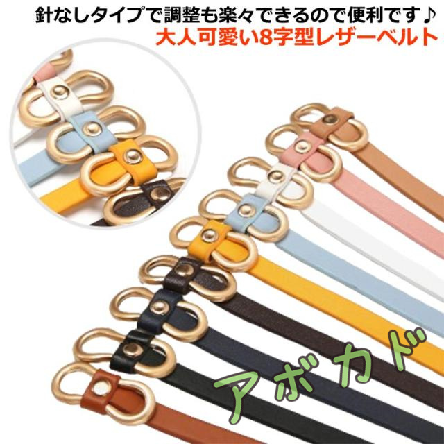 | 針なしタイプで調整も楽々できるので便利です♪ 大人可愛い8字型レザーベルト 高級感のある上質PUレザー。 8字型のゴールドバックルがアクセントのカジュアル・ビジネスベルト。 針なしのサークルリングバックル仕様なので、付けることが簡単で楽ちん。 お洋服が引っかかる心配もないので、カジュアルスタイルに手放せない。 シンプルな服装に合わせるだけで大人かわいいお洒落を楽しめます。 コーデにとってスパイス的な存在でおしゃれ気分が盛り上がるレディースベルトです。 | |