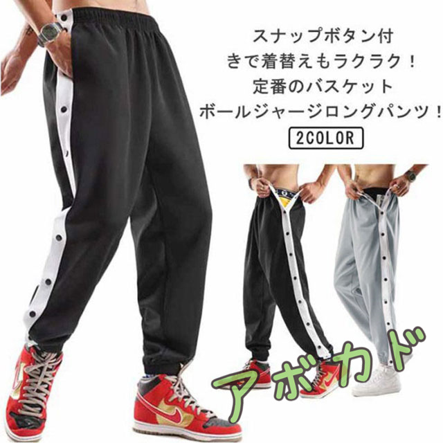 バスケパンツ バスケットボールパンツ メンズ ジュニア バスパン バスケットパンツ スナップボタン 長ズボン ロングパンツ ジャージ 下 練習着 無地 黒 グレー ブラック 大きいサイズ 送料無料