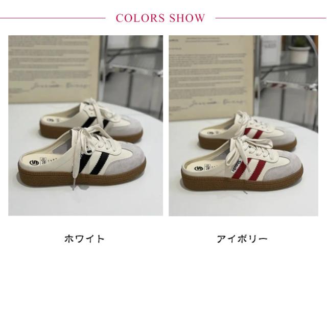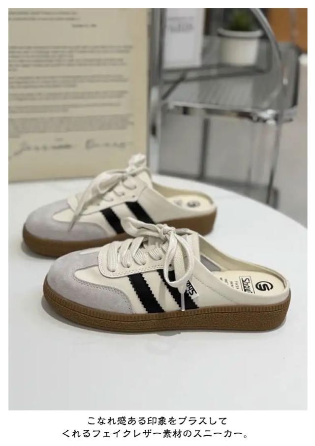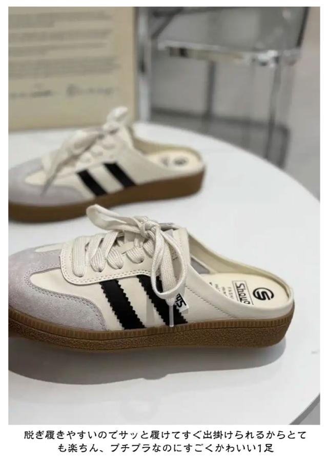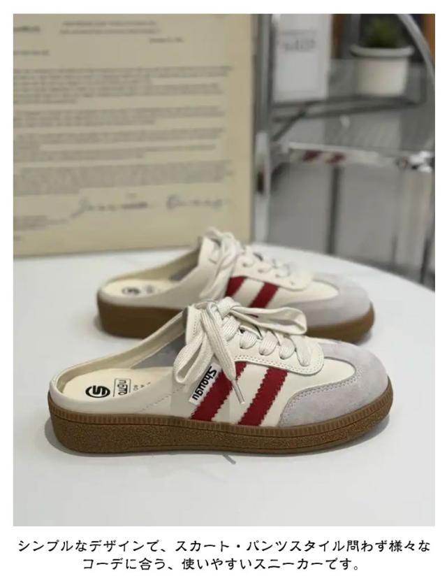 | サンダルやスリッパの代わりにもなる嬉しいなかかとなしスニーカーです。 脱ぎ履きやすいのでサッと履けてすぐ出掛けられるからとても楽ちん、プチプラなのにすごくかわいい1足 こなれ感ある印象をプラスしてくれるフェイクレザー素材のスニーカー。 丸みのあるつま先のラウンドトゥでお洒落に履きこなしやすく、歩きやすいデザイン。 シンプルなデザインで、スカート・パンツスタイル問わず様々なコーデに合う、使いやすいスニーカーです。 | |