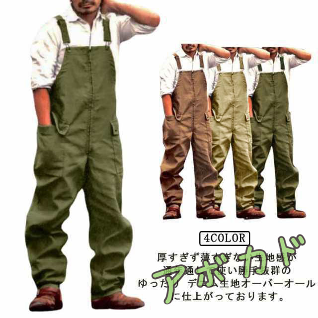 送料無料 オーバーオール メンズ サロペット レディース ユニセックス つなぎ デニム ストレッチ 無地 コスプレ イエロー ブラウン カーキグリーン グレー