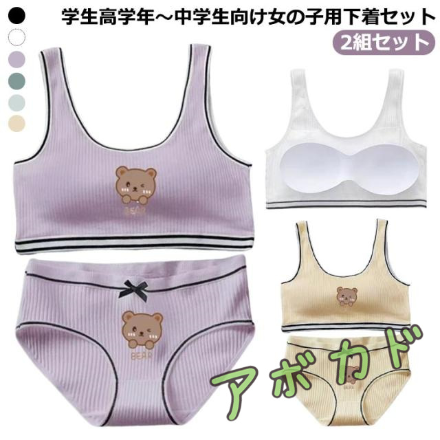 2組セット ジュニアブラ パンツ リブ ガールズ キッズ 上下セット レディース ジュニア下着セット ショーツ パッド付き カップ付き 大人 女の子 綿 コットン ブラジャー インナー アンダーウェア 肌着 スポーツブラ 子供 無地 中学生 小学生 下着 送料無料