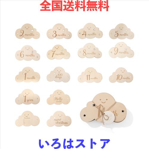 ◆商品名:サムコス 雲形 ウッド 8枚セット 月齢カード 収納袋付き 写真道具 ニューボーンフォト 月齢フォト ベビーマンスリーカッド 記念日フォト