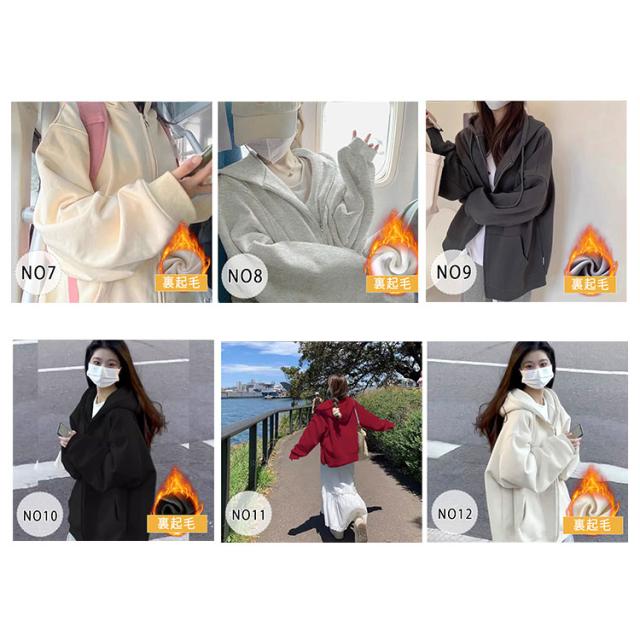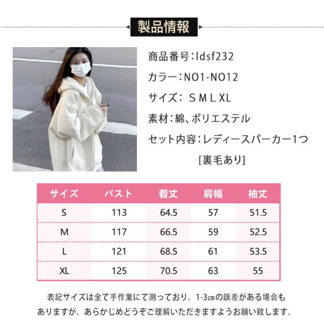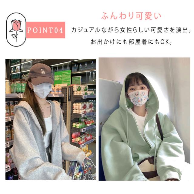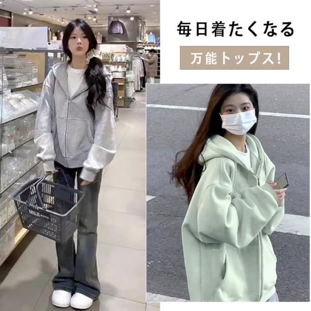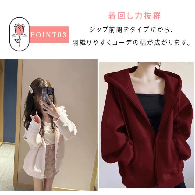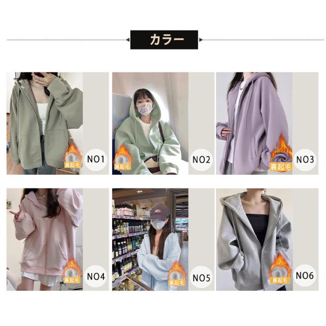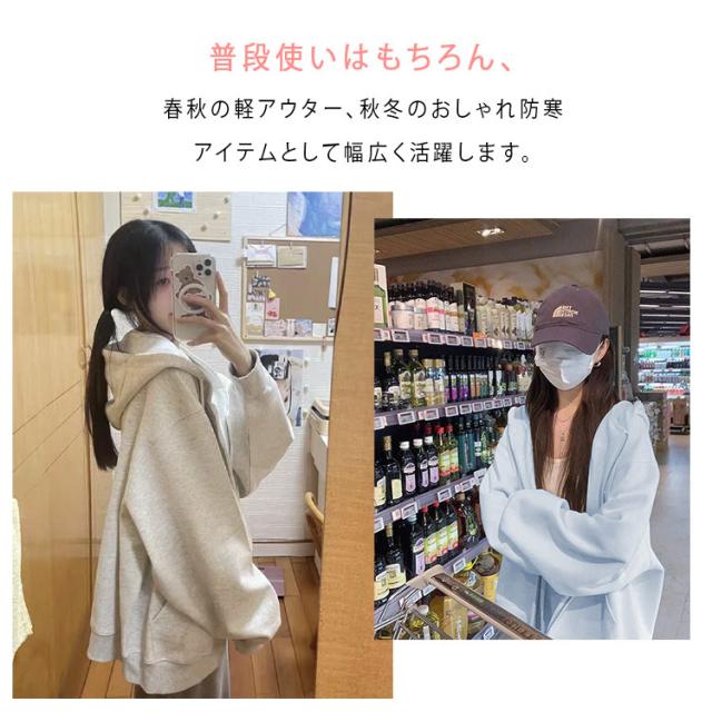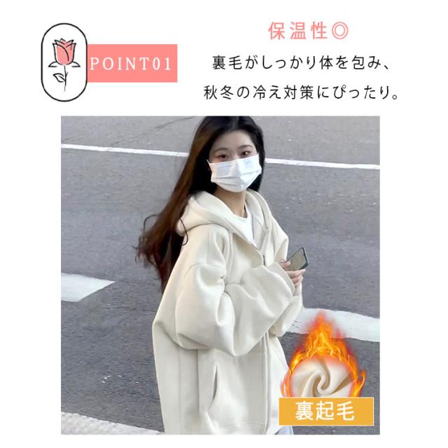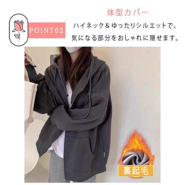 商品名 | パーカー レディース 長袖 ジップパーカー フード付き ハイネック スウェット 裏毛 ふわふわ モコモコ 保温 秋冬 春秋 羽織 前開き 可愛い カジュアル 着痩せ 体型カバー アウター トップス S M L XL |