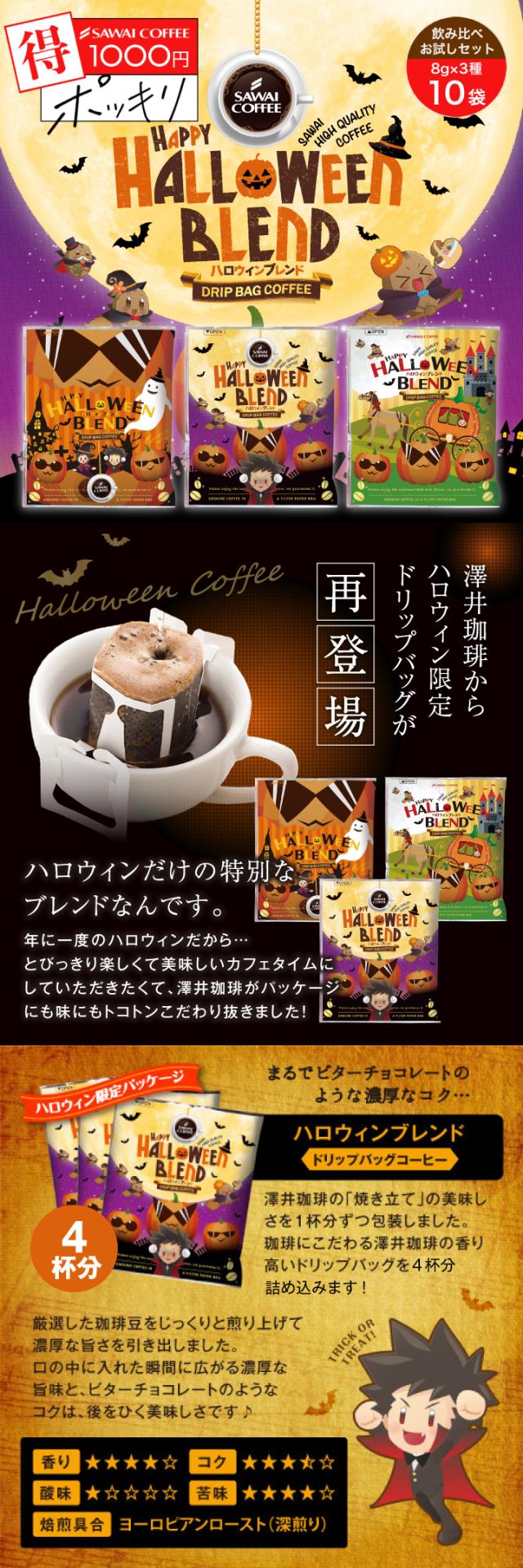 ハロウィン限定 ドリップコーヒー 3種 10杯分 お試し セット 1000円ポッキリ 送料無料 メール便 澤井珈琲 ドリップバッグ 少量 飲み比べ
