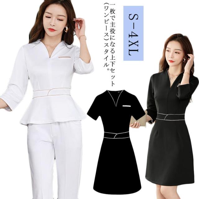 制服 おしゃれ エステ レディース 女 レディースファッション 通販 半袖ブラック(ワンピース) 半袖ホワイト(ワンピース) 7分袖ブラック(ワンピース) 7分袖ホワイト(ワンピース) 半袖ブラック(上下セット) 半袖ホワイト(上下セット) 7分袖ブラック(上下セット) 7分袖ホワイト(上下セット) S M L XL 2XL 3XL 4XL
