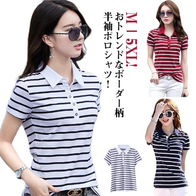半袖 衣装 tシャツ ボーダー柄 レデ トップス ポロシャツ 通販 カラー1 カラー2 カラー3 M L XL 2XL 3XL 4XL