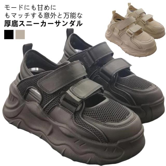 厚底 ダッドスニーカー 夏 サンダル 靴 豊富な品揃え ブラック ベージュ 35(225mm) 36(230mm) 37(235mm) 38(240mm) 39(245mm) 40(250mm)