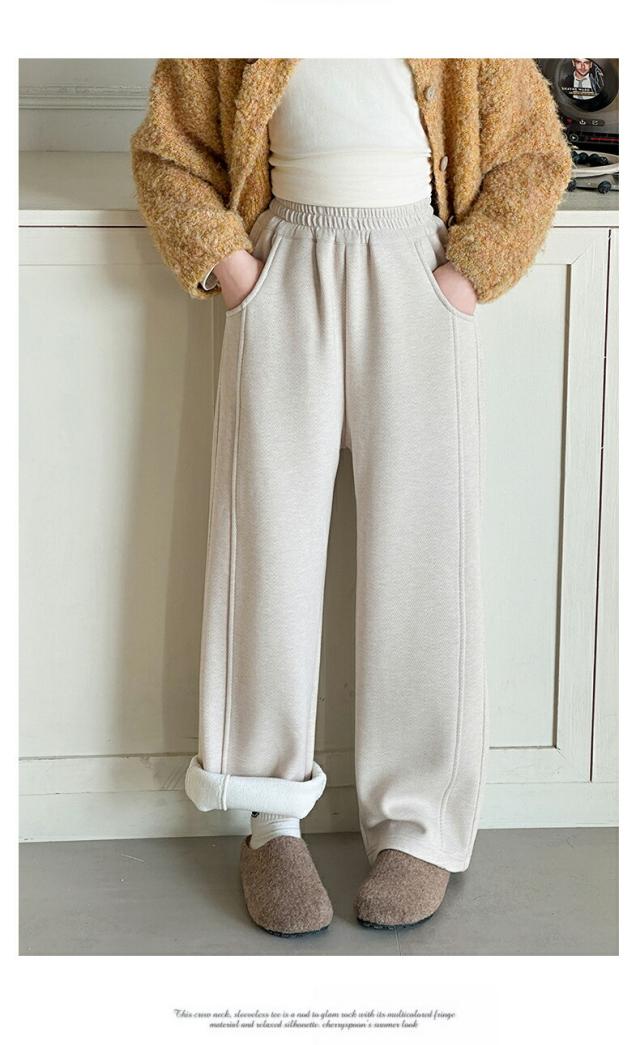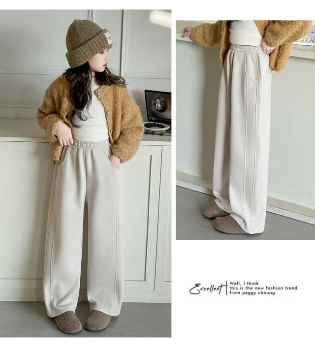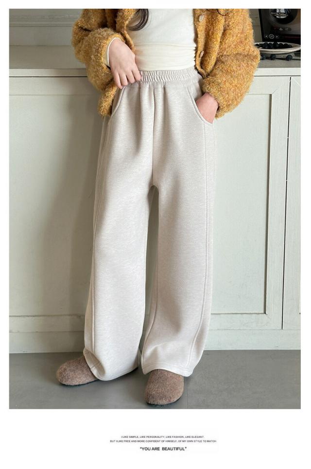 キッズ 子供服 ストレートパンツ ワイドパンツ スウェットパンツ 裏起毛 ロングパンツ 長ズボン ジャージパンツ 子供用 ボトムス ズボン ダークグレー ベージュ ジュニア カジュアル ゆった 女の子
