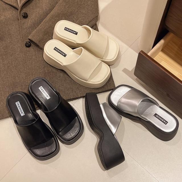 厚底サンダル 6.5cm レディース スリッパ 疲れない コンフォートサンダル サマーサンダル 厚底美脚サンダル 外履き 滑り止め 軽量 柔らかい 履きやすい 美脚 快適 ブラック シルバー シューズ