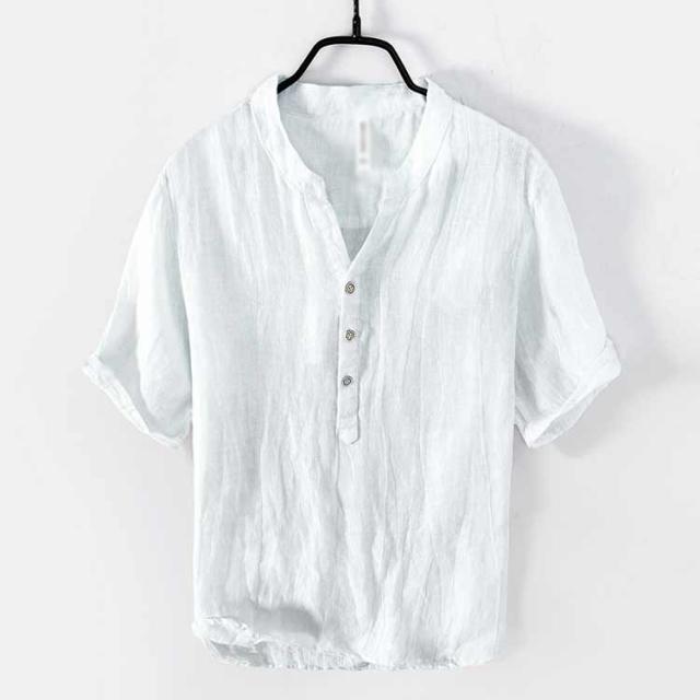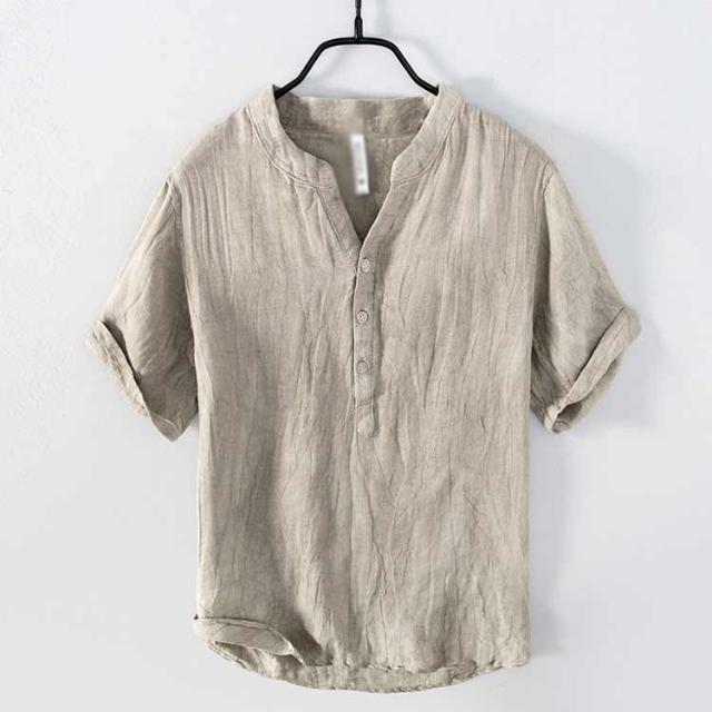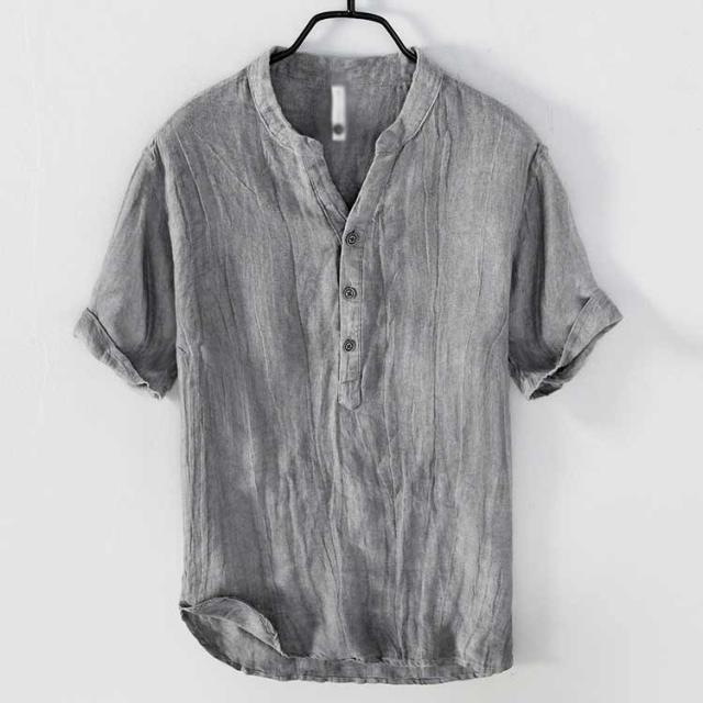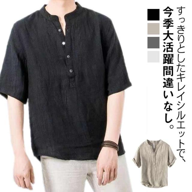 プルオーバー メンズ 麻 リネンシャツ リネン 半袖Tシャツ ヘンリーネック ボタンダウン 半袖シャツ カジュアル 五分袖 柔らかい オシャレ お洒落 ゆったり