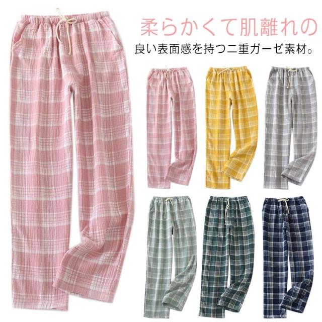 リラクシングウェア チェック柄 ズボン パジャマ パンツ メンズ 大きいサイズ イージーパンツ ルームパンツ ガーゼ 薄手 レディース ルームウェア コットン 長パ 夏