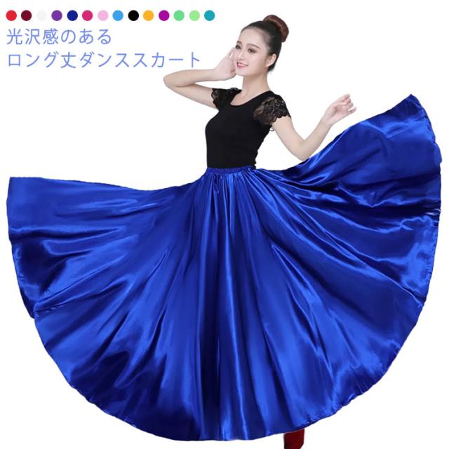 社交ダンス 360度 光沢感 スカート ロングスカート ダンススカート ロング丈 フレアスカート 720度 540度 ベリーダンス ダンス衣装 パソドブレ フラメンコ 80cm ラテンダンス