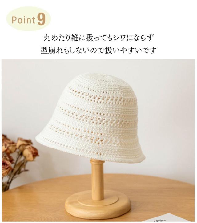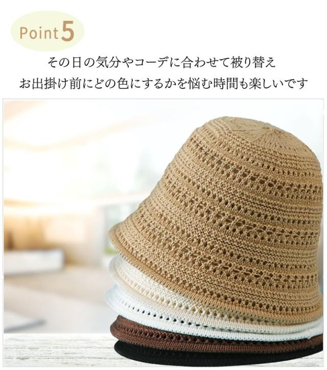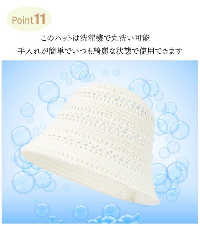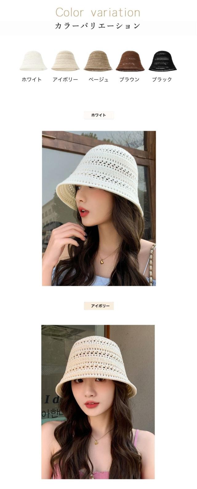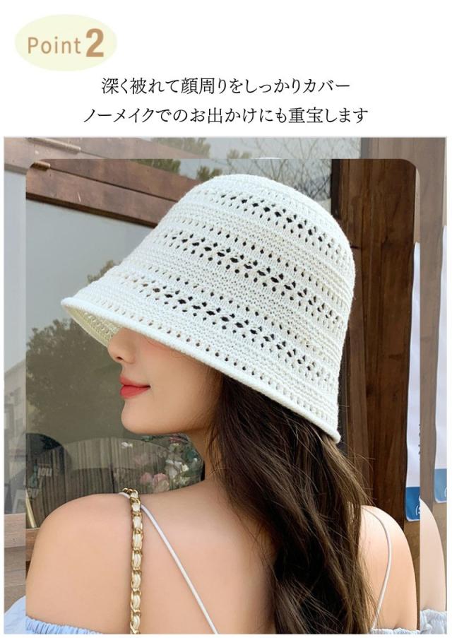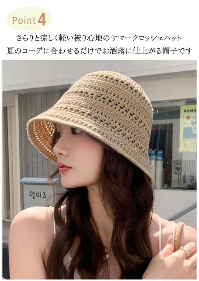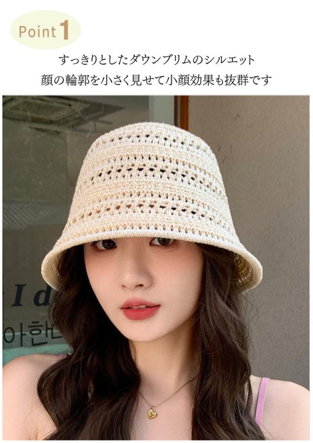サマー クロシェ ハット 小顔 レディース クロッシェ ハット バケットハット バケハ UV カット 深め 春 夏 おしゃれ 編み ニット 日焼け 帽子 サイズ 調整 深め ダウン ブリム かわいい 人気 おすすめ 通販韓国 女性 洗える 軽量 ブラック 黒 ホワイト 白 ベージュ