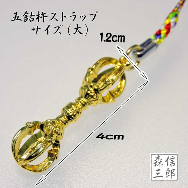 御守 縁起物 厄除け 五鈷杵ストラップ(大) キーチェーン キーホルダー (お守り 根付け ストラップ 金運 長寿 魔除け 開運 幸運 アクセサリー 仏具 法具 三鈷杵 独鈷杵 金剛杵 弘法大師 空海 敬老の日 贈り物 長生き 土産 京都礼品 プレゼント)