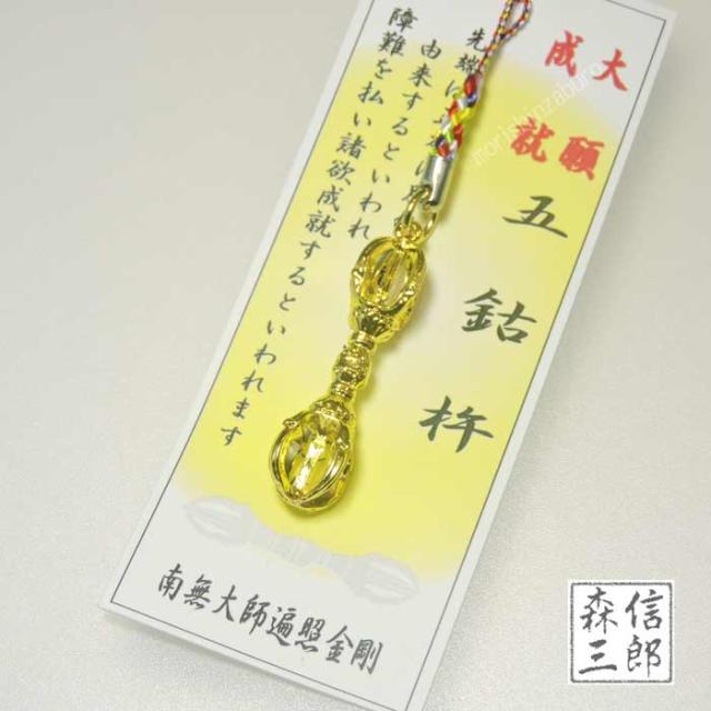 開運 根付けストラップ プチギフト 金運 長寿のお守り 縁起物 プレゼント 旅行 お土産に 鞄 財布 魔除け 敬老の日 贈り物《五鈷杵 ストラップ 金剛杵 五色紐 弘法大師 空海》