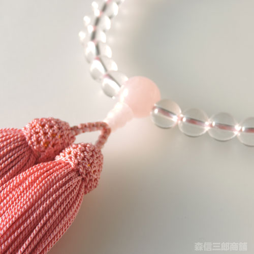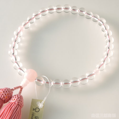数珠 女性用 約8ミリ 本水晶 紅水晶 正絹房