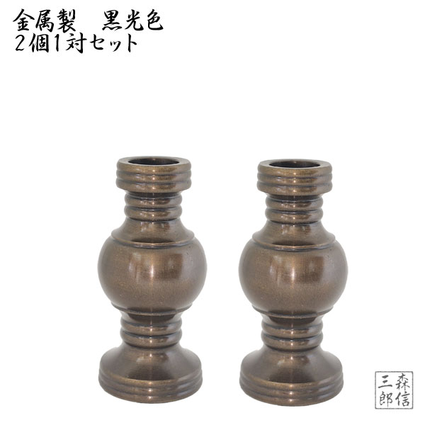 金属製 華鋲 2.3寸 1対2個 (黒光色)【日本製 仏具】(高さ6.8cm×幅3.5cm×奥行3.5cm)(湯呑 花立て 常花 黒色 仏花 仏前 モダン仏具 仏壇 祭壇 けびょう)