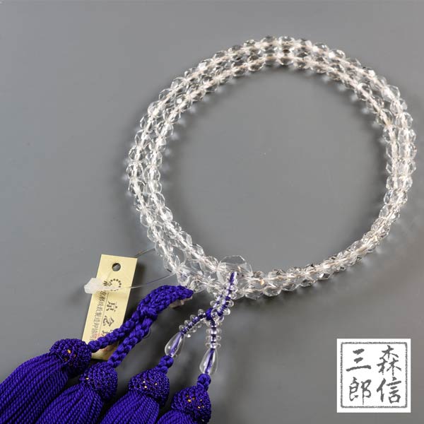 数珠 女性用 浄土真宗 二輪数珠 ガラス玉 白切子 (玉:透明 房色:紫) 本式数珠 正式(京念珠 カット玉 二重 念誦 婦人用 記念品 本願寺 葬式 葬儀 法要 法事 墓参 墓参り お盆 女子 女性 女の子 高級感 かわいい 綺麗 高見え)