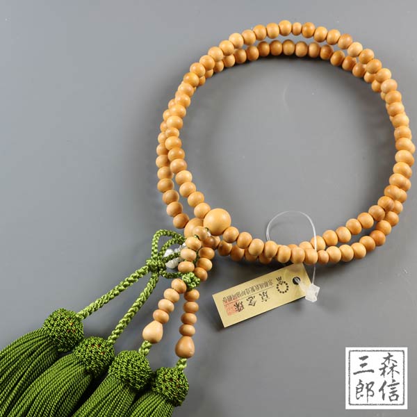 数珠 女性用 浄土真宗 黄楊 ツゲ 正絹房 (房色・緑) 本式数珠 正式数珠(天然木 京念珠 念誦 天然石 緑 青色 二重 二輪 宅配便なら フォーマル 記念品 葬式 葬儀 法要 法事 墓参 お盆 新盆 )