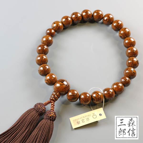数珠 男性用 鉄刀木 22玉 共仕立 正絹房 (房色・茶) (京念珠 木製 メンズ 紳士用 略式数珠 念誦 フォーマル 記念品 葬式 葬儀 法要 法事 墓参 お盆 新盆 )