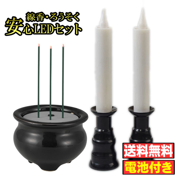 LEDローソク 電池式 LED線香 LEDろうそく 本物志向のLED仏具セット(線香x1+ローソクx2)【電池無料】 (電気 電子線香 線香 LEDキャンドル モダン仏壇)人間用ですがサイズが合えばペット供養にも 小型大型仏壇 保証付きの国内メーカー