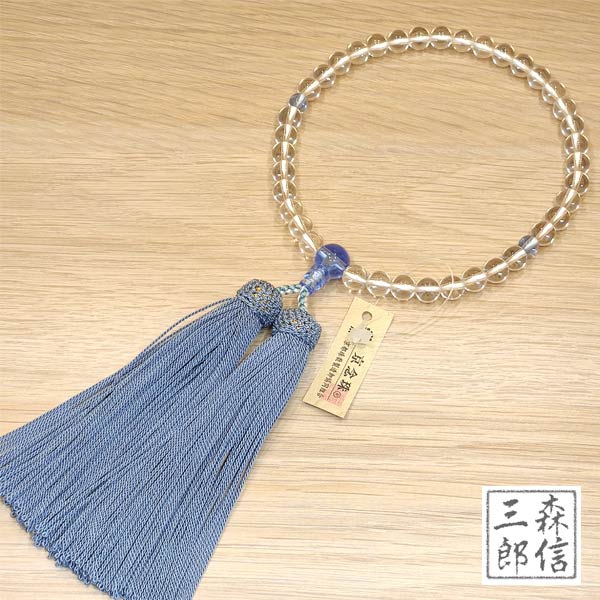 数珠 女性用 本水晶 ブルークオーツ仕立て 正絹房(房色・水色) (京念珠 天然石 青 クオーツ 略式数珠 念誦 婦人用 フォーマル 記念品 葬式 葬儀 法要 法事 墓参 お盆 新盆 )