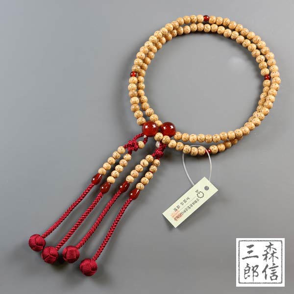 数珠 女性用 真言宗 二輪数珠 星月菩提樹 瑪瑙仕立 8寸 正絹房 本式数珠 (赤メノウ 正式 京念珠 二重 念誦 婦人用 フォーマル 記念品 葬式 葬儀 法要 法事 墓参 お盆 新盆 )