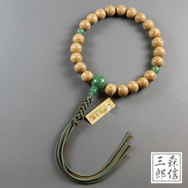 浄土真宗 男性用 数珠 星月菩提樹 22玉 アベンチュリン仕立て 正絹紐房 (房色・緑 茶)本式数珠 (京念珠 念誦 門徒 葬式 法事 フォーマル 記念品 葬式 葬儀 法要 法事 墓参 お盆 新盆 )