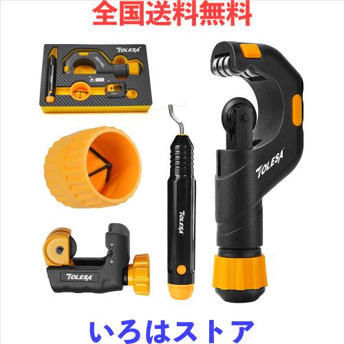 TOLESA パイプカッター 4点セット 切断能力5〜50mm 面取り用パイプリーマー付 バリ取り パイプ 切断 ステンレスパイプ 銅管 鉄用 金属