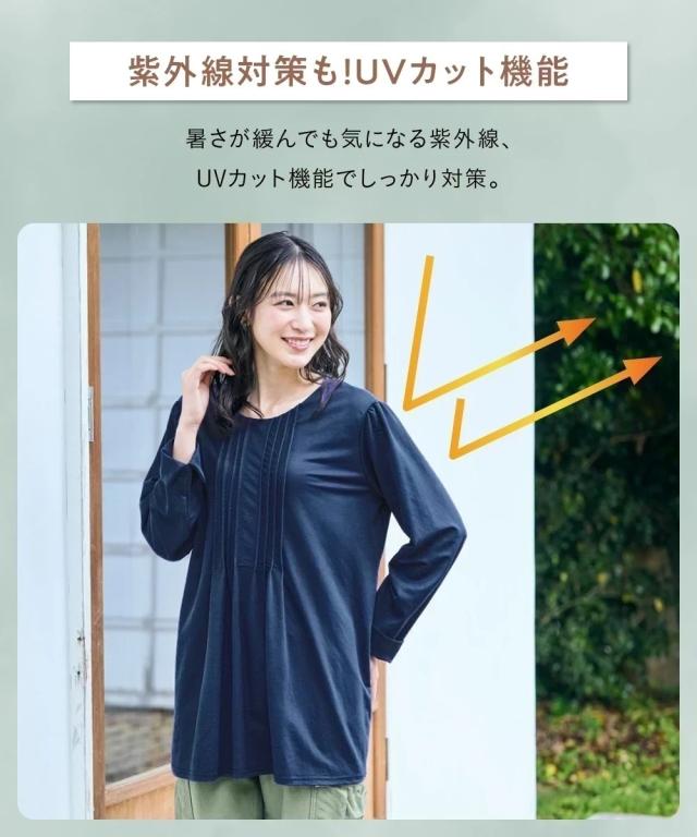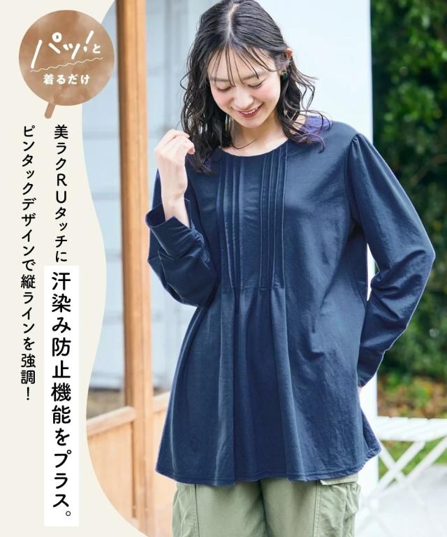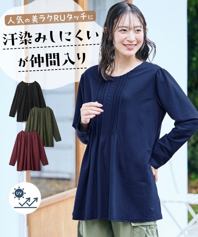 チュニック レディース 美ラクRUタッチピンタック デザイン 汗染み防止 UVカット 秋 体型カバー お尻隠れる