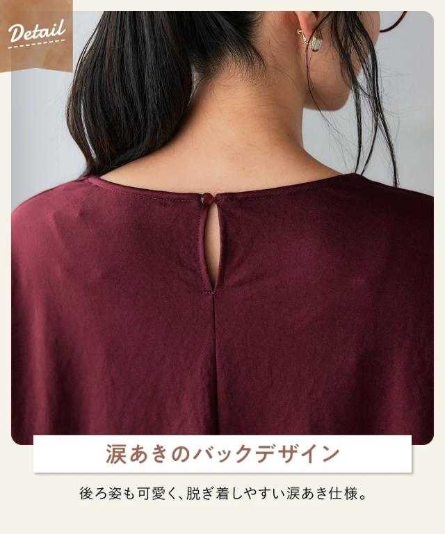 大人気の美ラクRUタッチシリーズに、汗染みしにくい機能が仲間入り!これからの季節に嬉しい機能性チュニックが登場です。動きやすくて楽ちん、コーデ不要で楽ちん、洗濯も楽ちん。さらに汗染み防止とUVカット機能まで備わった、まさに「楽ちん」を極めた一枚。気になる汗染みを気にせず、太陽の下でも快適に過ごせるから、お出かけがもっと楽しくなります。 ■デザイン 体型カバーも叶える、美ラクRUタッチピンタックデザインチュニック。胸元にあしらわれた繊細なピンタックデザインが、縦のラインを強調し、すっきりとした印象を与えます。ふんわりとしたシルエットながらも、広がりすぎない絶妙な丈感で、気になるお腹周りやヒップラインを自然にカバー。後ろボタンの涙開きデザインは、着脱のしやすさだけでなく、さりげないアクセントにもなっています。袖下にはスリットが入っており、腕の動きを妨げず、快適な着心地を実現。シンプルながらも細部にこだわったデザインは、普段使いはもちろん、ちょっとしたお出かけにも活躍する万能アイテムです。 ■素材 レーヨン特有のなめらかな肌触りと、ナイロンの丈夫さを兼ね備えた、まさにデイリーウェアにぴったりの素材です。軽やかでドレープ性が