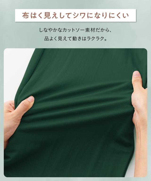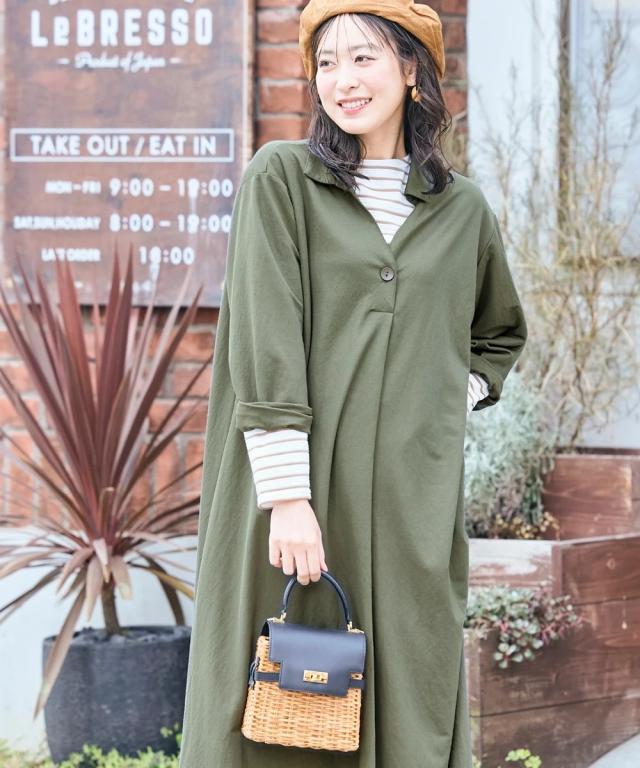 人気の美ラクRUタッチシリーズに、汗染みしにくい&UVカット機能付きの優秀ワンピースが新登場!動きやすさ、楽ちんさ、そして洗濯のしやすさまで、とことん追求しました。これ一枚で、コーデに悩むことなく、いつでも自信を持って外出できます。 ■デザイン 体型カバーも叶う、ゆったりとしたシルエットが魅力の衿付きスキッパーワンピース。デコルテをきれいに見せるスキッパーデザインは、顔周りをすっきりと見せ、女性らしさを引き立てます。前ボタン開きなので、着脱もスムーズ。気になる二の腕やお腹周りも自然にカバーしてくれるので、体型を気にせずおしゃれを楽しめます。膝下まである長めの丈は、一枚でサマになり、縦長効果でスタイルアップも期待できます。デイリーユースはもちろん、ちょっとしたお出かけにも活躍する、着回し力抜群のデザインです。 ■素材 なめらかな肌触りで着心地抜群。汗染み防止加工が施されているため、汗をかいても目立ちにくく、これからの季節に嬉しいポイントです。(※完全に防止するものではありません。また染み具合は本体の色によって異なります。)さらに、UVカット機能も付いているので、日差しが気になる季節も安心。軽やかでシワになりにくい素材な