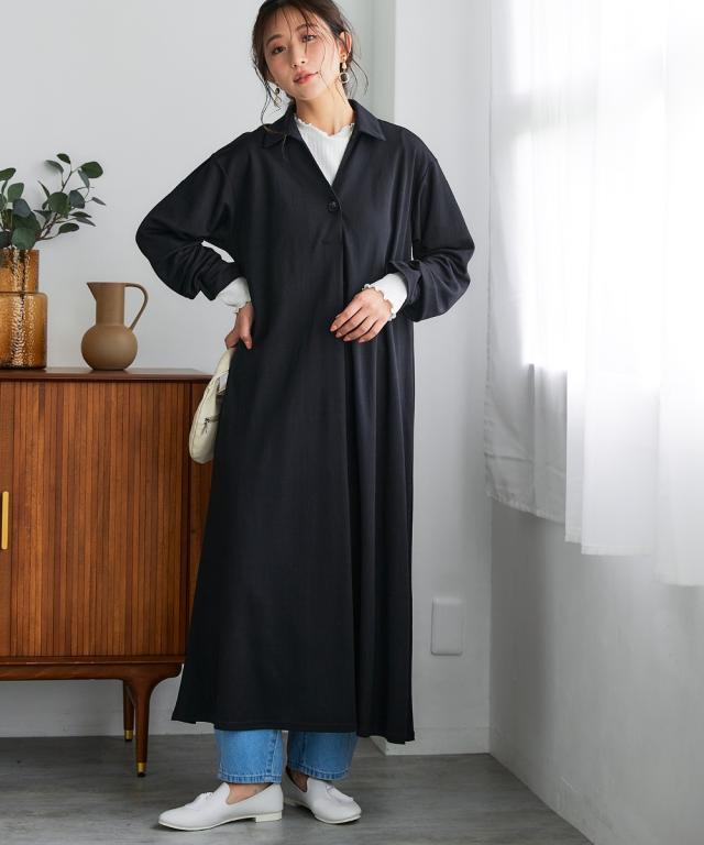 ロング マキシ レディース 美ラクRUタッチ衿付スキッパー 汗染み防止 UVカット 秋 ひざ下