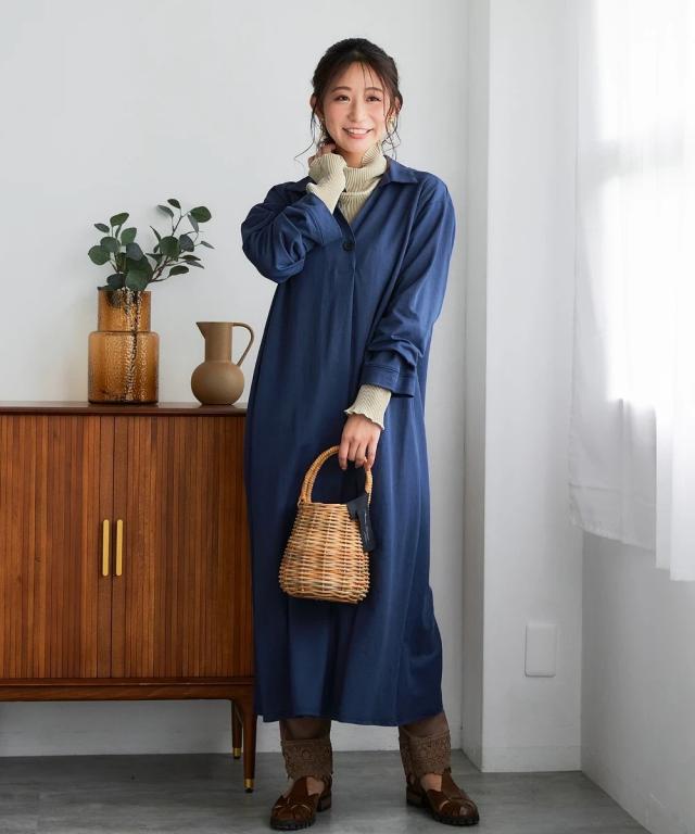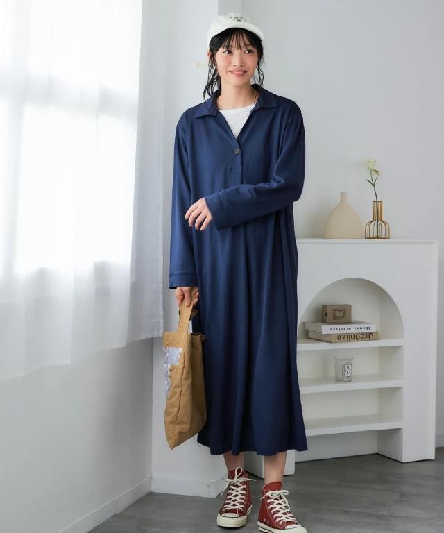 ワンピース ロング マキシ レディース 美ラクRUタッチ衿付スキッパー 汗染み防止 UVカット 秋 ひざ下 | 4L/5L/6L | ニッセン nissen