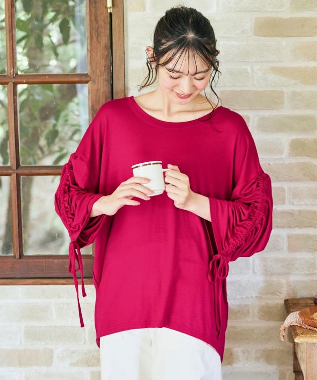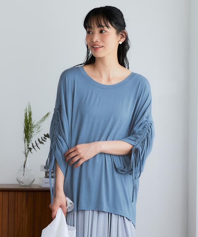 チュニック レディース たっぷりドレープ袖ギャザー 接触冷感 UVカット 秋 体型カバー お尻隠れる | 8L/10L | ニッセン nissen