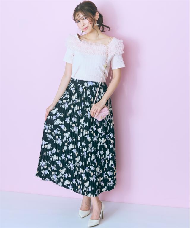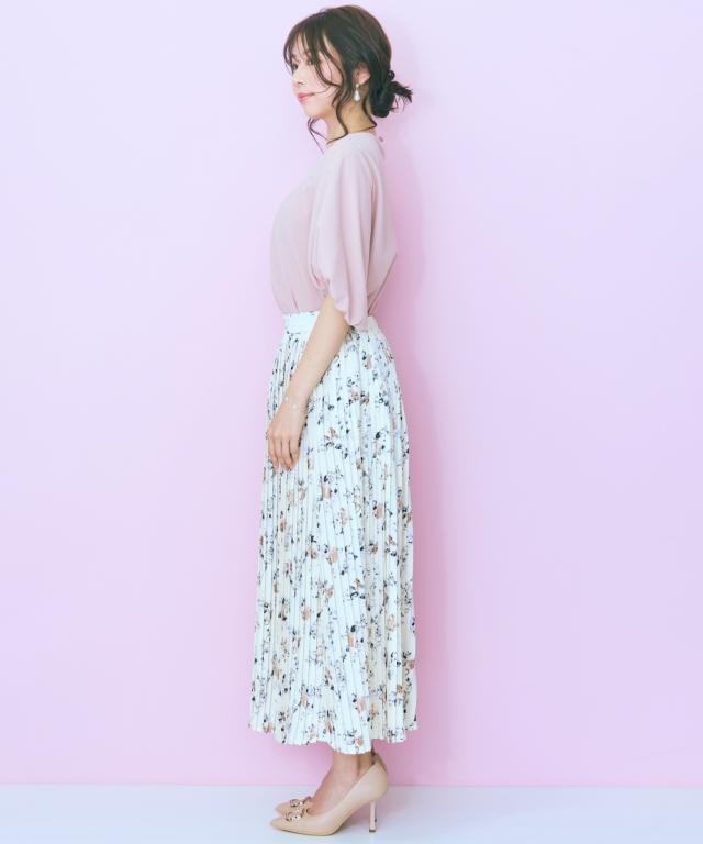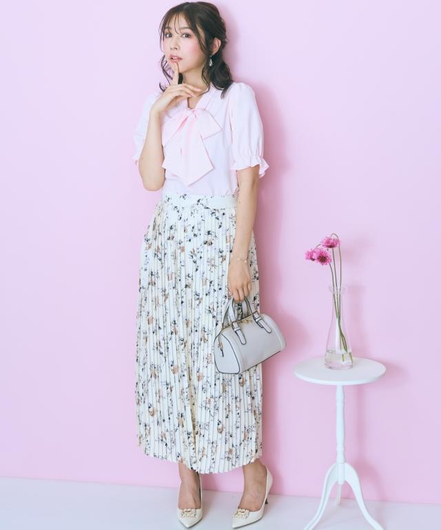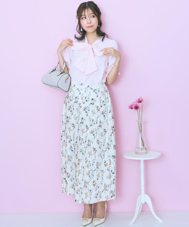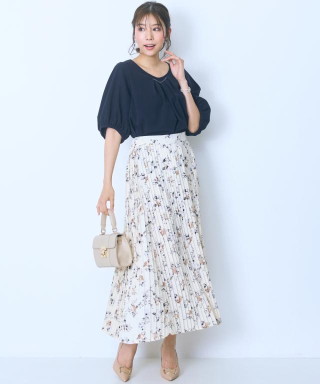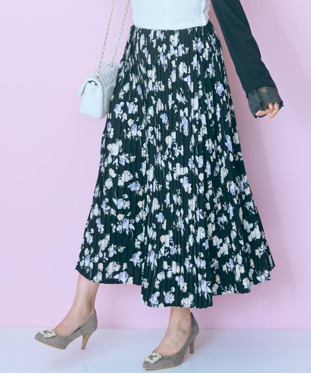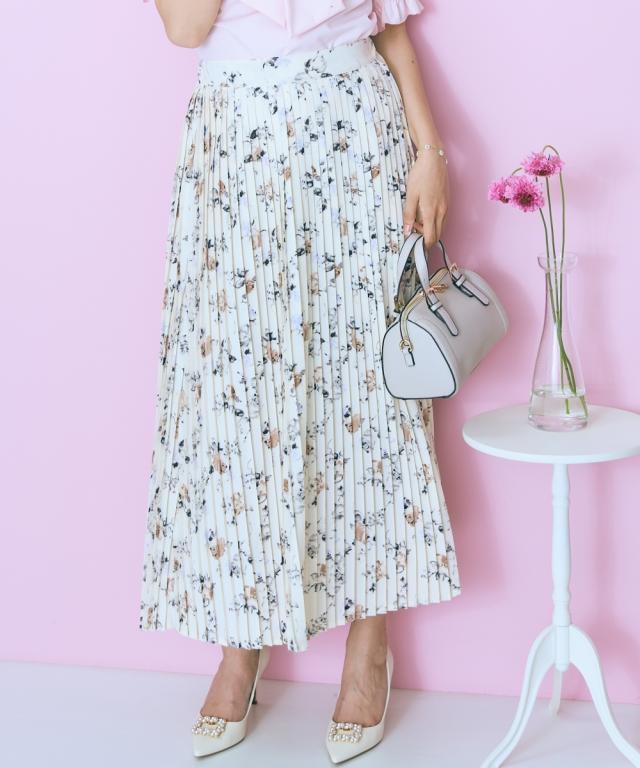 上品な花柄が目を惹くフェミニンなプリーツスカートはゴム仕様で着心地も楽々 ■デザイン 軽やかな素材感と繊細なプリーツが歩くたびに優雅なシルエットを演出します。 ■素材 軽やかな生地感でシーズンレスに着ていただけます ■おすすめのスタイリング シンプルなトップスと合わせればスカートの美しさが際立ち洗練された大人の着こなしに。