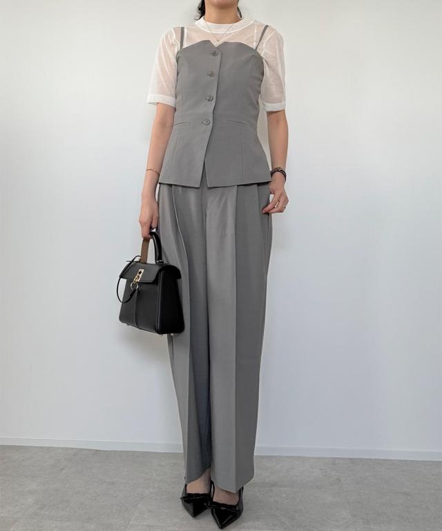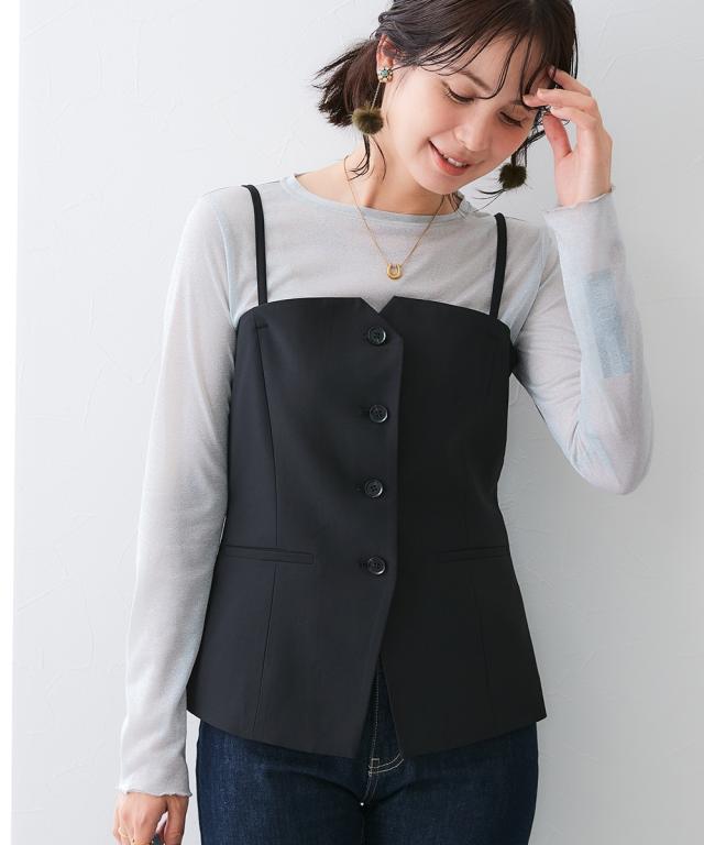 スーツ レディース みさとさんコラボ フロントボタンビスチェ しわになりにくい UVカット 夏 ビジネス セットアップ | M | ニッセン nissen