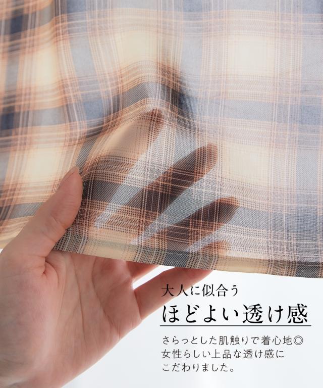 品質=ポリエステル100% 前・袖口ボタン開き チェック柄:柄の出方が多少異なる場合があります。 透け感:ややあり 伸縮性:なし 生地の厚み:薄い 光沢感:なし ポケット:なし 季節:春・秋 シルエット:ゆったり 原産国:中国製 備考:洗濯機OK ネット使用 ※単位:cm ※仕立てサイズとは、実際に商品を測った時のサイズのことです。 ※サイズの誤差は多少発生します。
