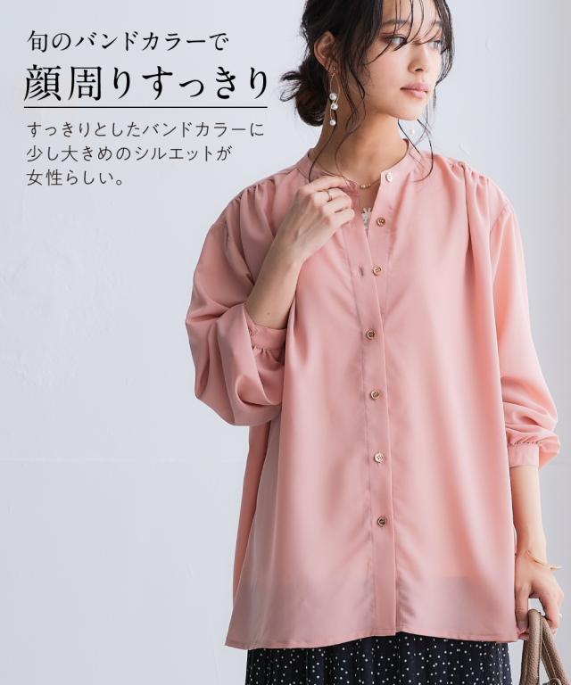 シャツ ブラウス レディース シアーバンド カラー ゆる 吸汗速乾 防しわ 春 秋