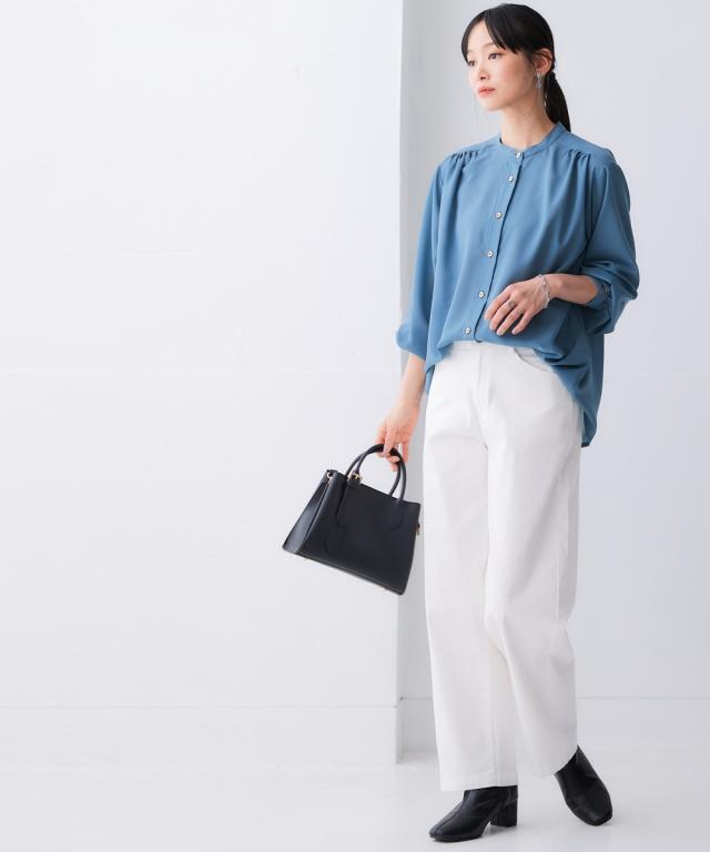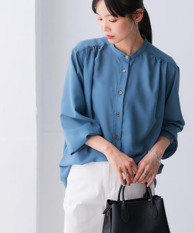 シャツ ブラウス レディース シアーバンド カラー ゆる 吸汗速乾 防しわ 春 秋