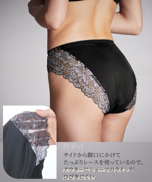 脇高 フルカップブラジャーのコーディネイトショーツ。 バック生地はタテヨコ2WAYに伸縮するので、程よくヒップにフィットして快適な履き心地。 脚口に施した幅広レースでアウターに響きにくくなっています。 素肌に映える美しいレース柄は大人の女性を演出してくれます。 お揃いのブラジャー(別売り)とのコーディネイトをおすすめいたします。(ブラジャー品番:CJC0223D0004)