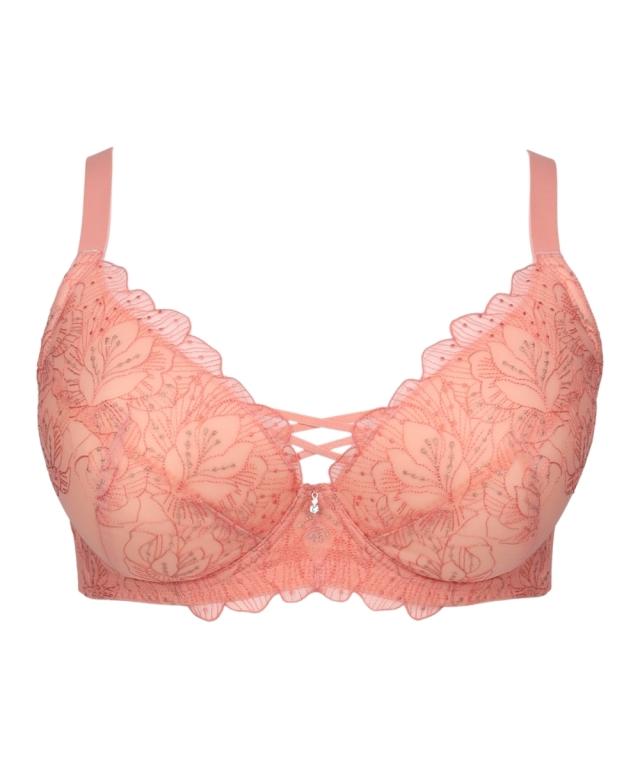 【美胸キーパー3/4カップタイプ】※ストラップがズレ落ちにくくなりました!※ ・ぽっちゃり体型に合わせた専用パターンを採用! ・グラマーバストを”しっかりホールド” ・バストの横流れを防ぎキレイなシルエットをキープ ・水中に咲く花とキラキラと輝く泡が流れるような動きのある刺しゅう柄